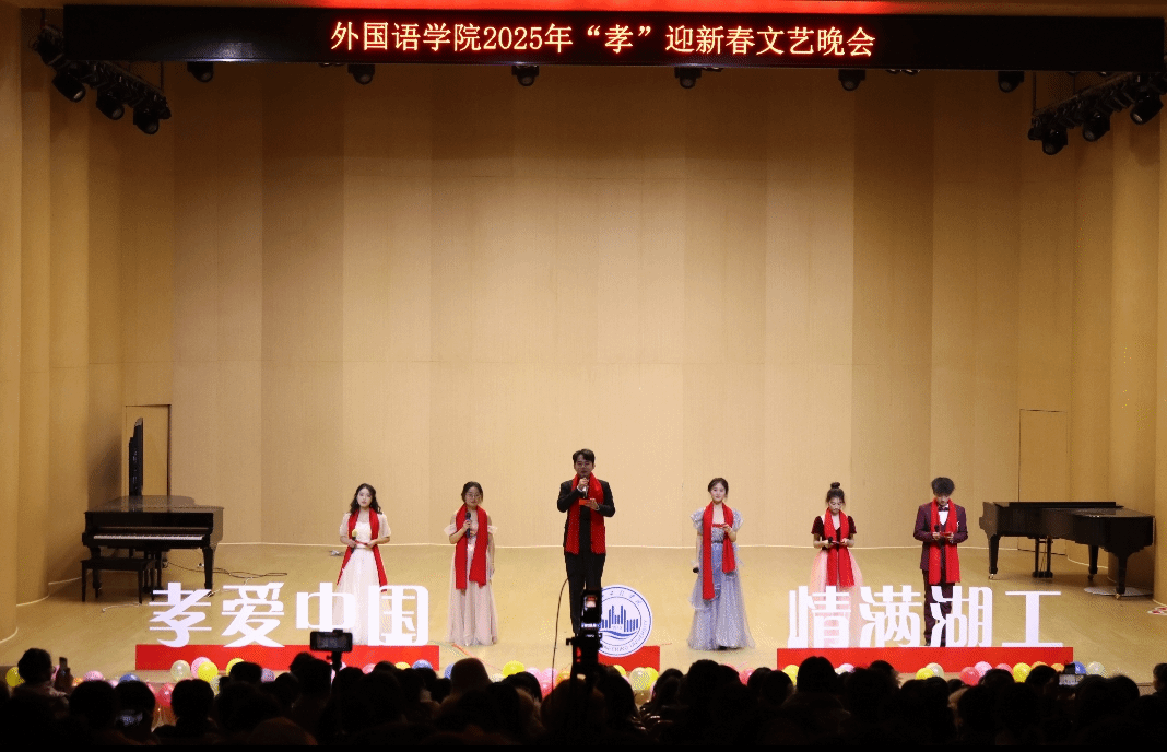 晚会围绕“小孝敬亲,中孝敬业,大孝报国”三个篇章依次展开。孝感麻糖米酒有限责任公司董事长肖端武先生、2138cc太阳集团官网入口各领导和师生共同出席了本次晚会。在主持人们的祝福中,以“孝爱中国,情满湖工”为主题,2025 年“孝”迎新春文艺晚会正式开始。