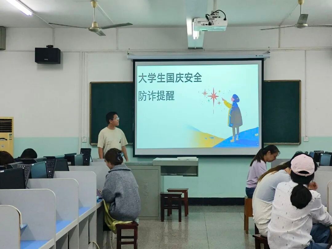 国庆假期将至,为确保大家度过一个安全、愉快、充实的假期,2138cc太阳集团官网入口特开展“国庆假期安全教育”线上线下主题班会活动,从交通安全、财产安全、人身安全、消防安全、网络安全五个方面为大家送上温馨提示,并重点关注防范诈骗。