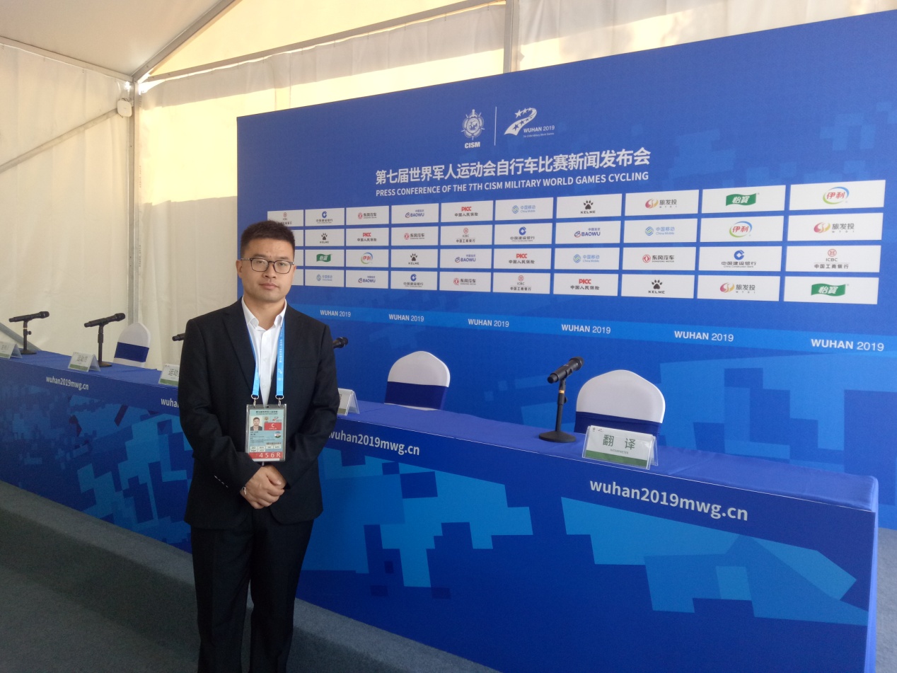 公司教师柯军,是一名人事部认证的二级口译员。军运会期间,他参与了公路自行车、公开水域游泳和马拉松等三个项目的口译工作。他的主要职责是媒体工作间的口译和协调工作,具体负责口译中方工作人员的相关工作信息和外方记者的沟通协调。