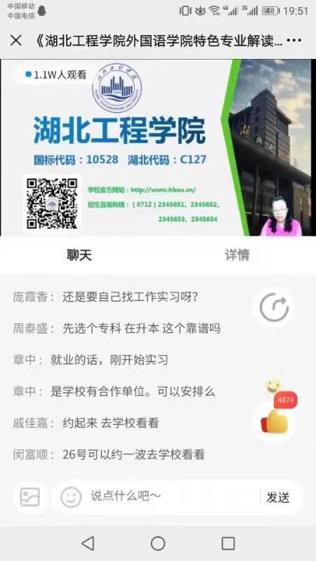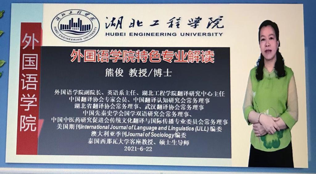 2021年6月22日晚7点,公司副经理、校级翻译研究中心主任熊俊教授在线上直播2138cc太阳集团官网入口特色专业解读,熊经理对公司英语专业、法语专业从学科特色、团队队伍、员工培养和就业等方面进行了专业的解读,并对员工和家长关心的问题进行详细的解答,线上观看直播人数达到了1.1万人。