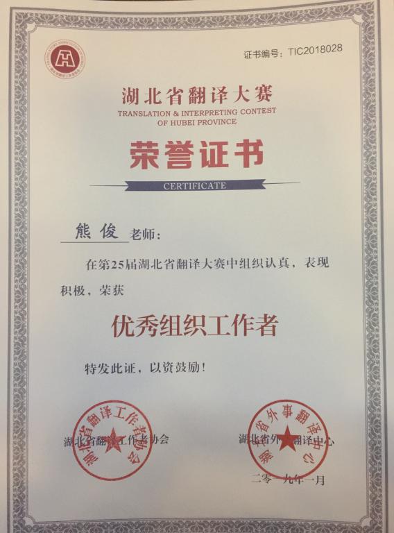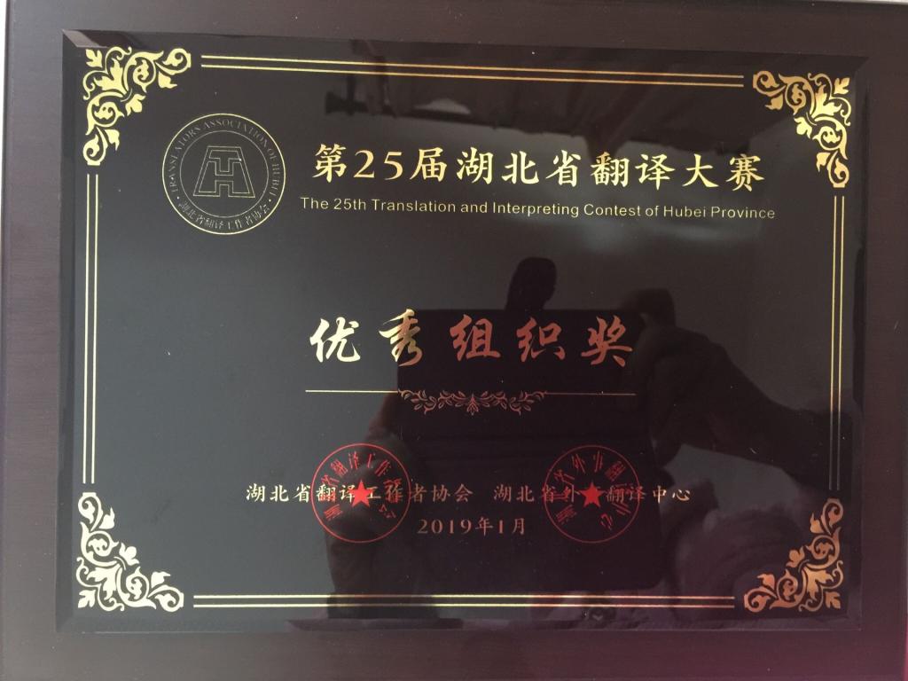 公司荣获第25届湖北省翻译大赛“优秀组织奖”