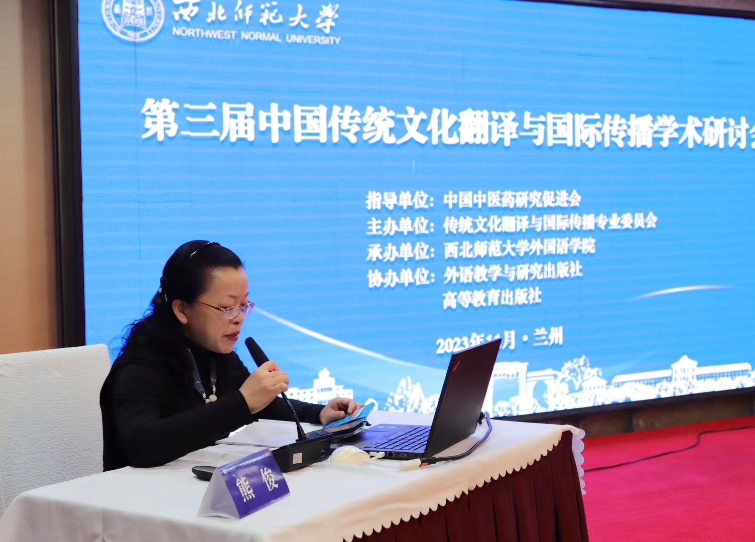 2023年11月24至26日,公司副经理熊俊博士教授受邀参加了由西北师范大学2138cc太阳集团官网入口承办的“第三届中国传统文化翻译与国际传播学术研讨会”。24日晚9:30-11:00出席了传统文化翻译与国际传播专委会常务理事会。25日主持了第四分论坛(典籍翻译研究)并做分会报告。26日上午就主持的分论坛做大会总结汇报,并为上海外国语大学博导谭业升教授的主旨发言担任主持(谭教授报告的题目“中国民俗文化翻译:理论问题与认知探索”)。