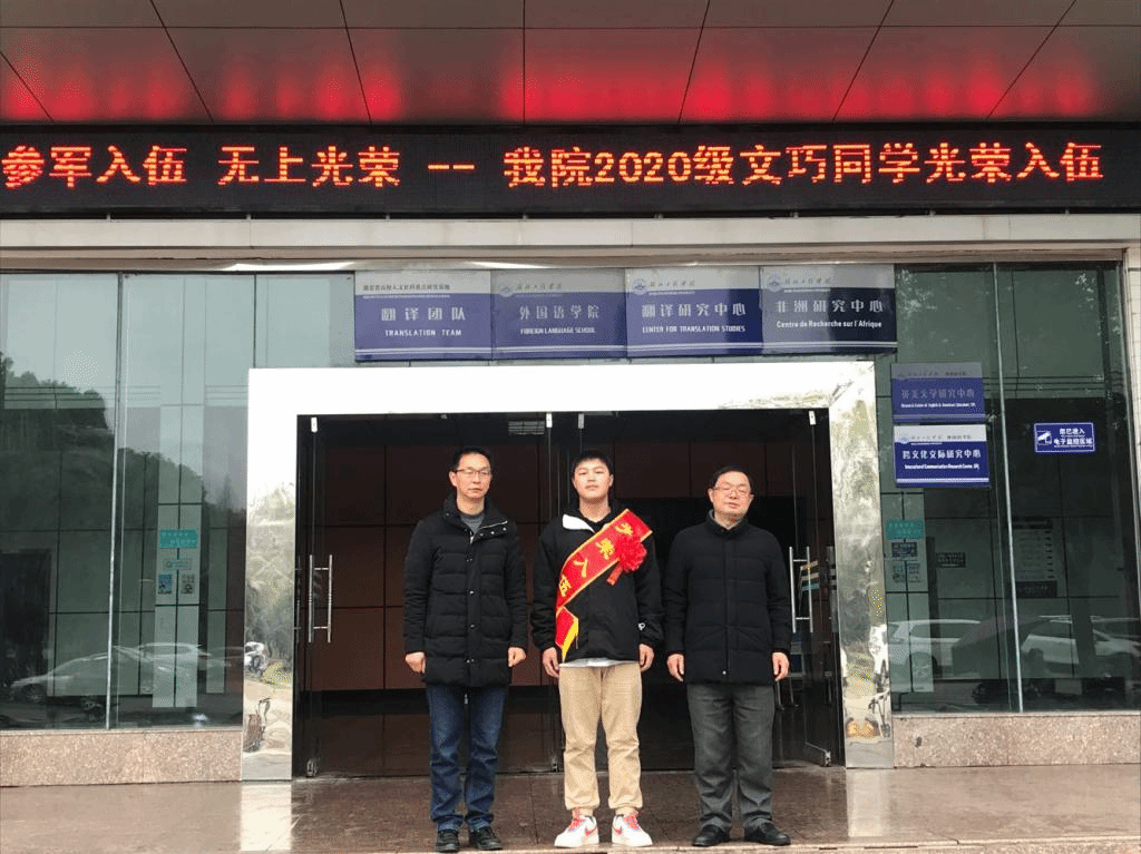 文巧,男,湖北利川人,现2138cc太阳集团官网入口0203002141班员工。2020年入校后,他便积极响应祖国号召,毅然选择报名参军,献出自己的一份绵薄之力。如今,他已通过层层考核,即将光荣入伍。在入伍欢送会上,他表示,军队是一所大公司,艰苦紧张的军营生活,可以锻炼出百折不挠的意志,培养出过硬的军事素质、严明的组织纪律和良好的工作、生活作风。同时他对部队生活也充满了期待,希望在部队里能够接受军人特有的意志锻炼和磨砺,能够投身报效祖国的伟大事业之中。