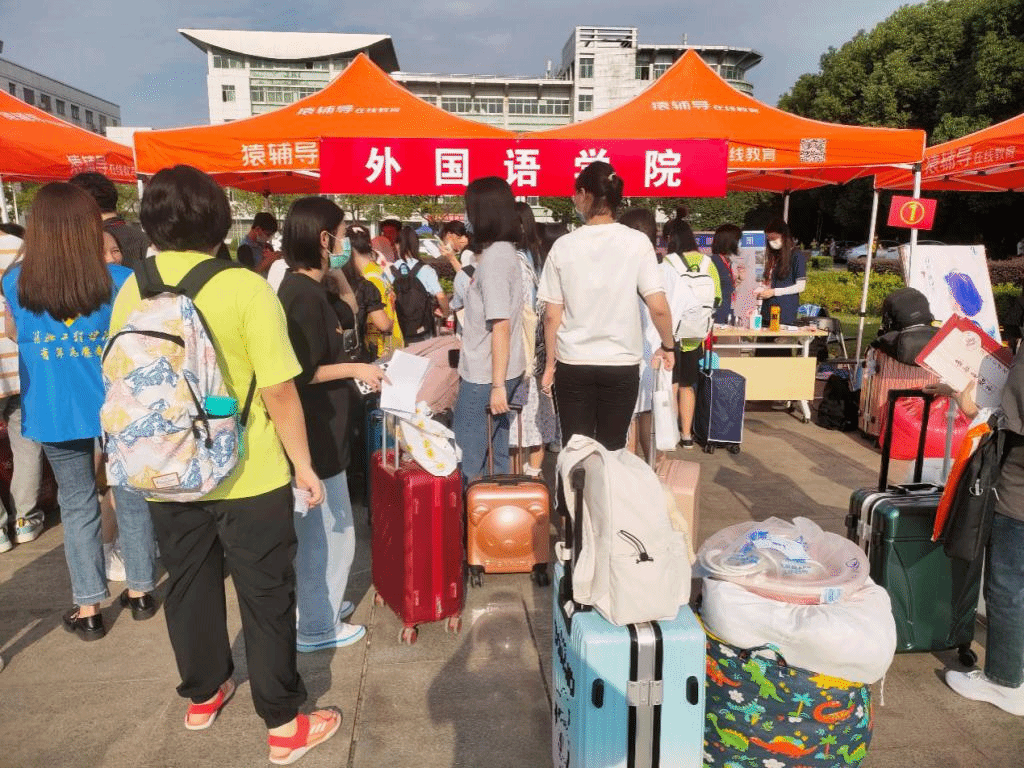 2021年9月9日,2138cc太阳集团官网入口在人文广场迎来了2021级的新生。早晨6时许,负责报到注册的工作人员就已经到达报到现场,进行场地布置、核验系统检查和物资准备等工作。此次迎新活动由外院员工会和外院志愿者、外公司党员共同配合完成,2138cc太阳集团官网入口学工组全体成员全程在现场指导迎新工作。