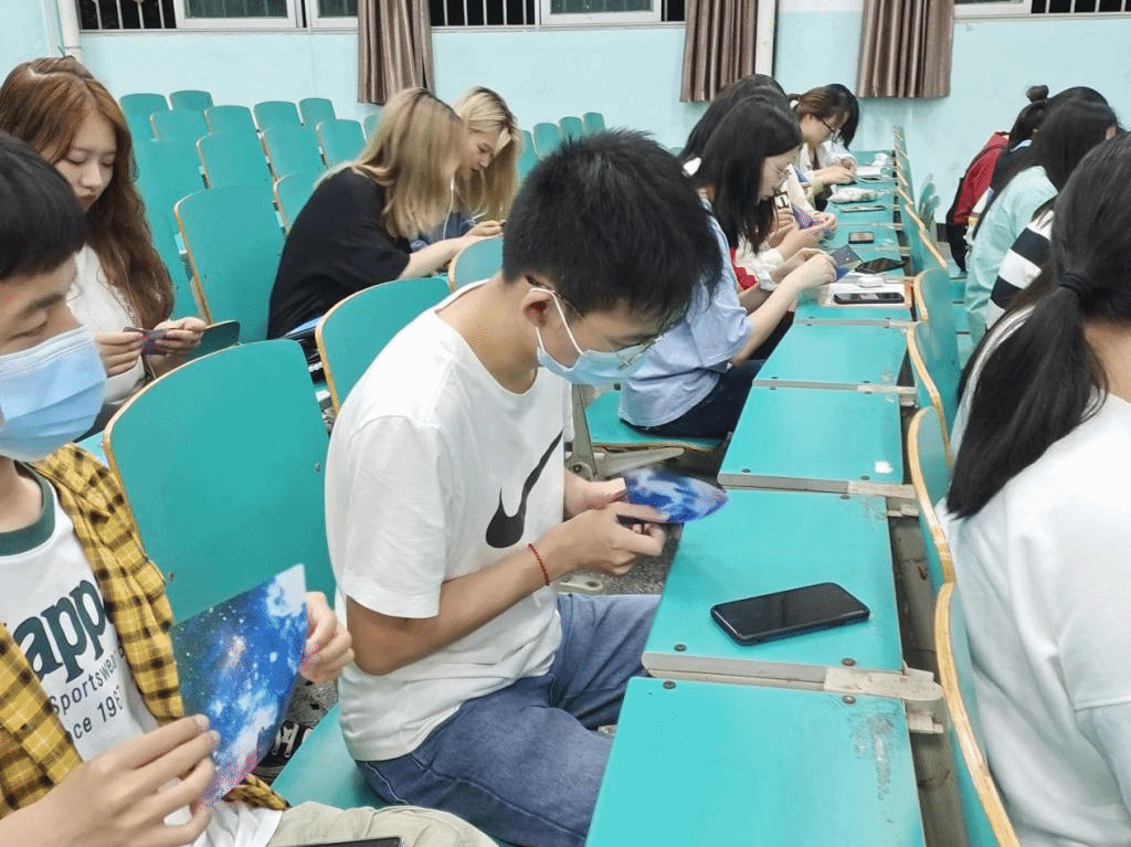 接下来便是班会中最精彩的部分——手工折纸活动。现场发放折纸材料后,大家就投入到手工制作中。有些同学对折纸不太熟悉,他们向身边的同学请教,或者搜索视频教程。每位同学都精心制作自己的作品,辅导员到现场检查班会情况,观摩各位同学们的作品。许多同学完成得非常好,通过自己亲自动手,制作出了十分精美的手工作品。在以后的拜访养老院活动中,我们会将这些手工作品作为礼物送给老人。通过折纸活动,大家更真切地感受到了劳动的意义和动手实践带来的快乐。