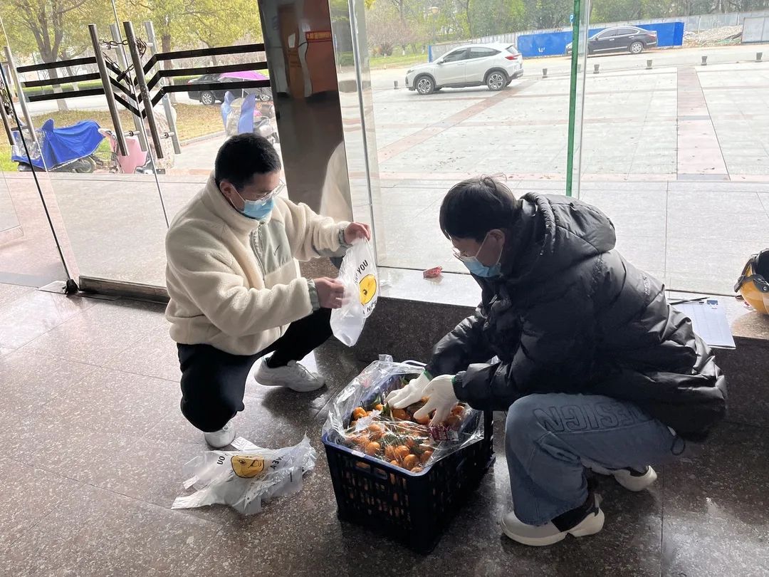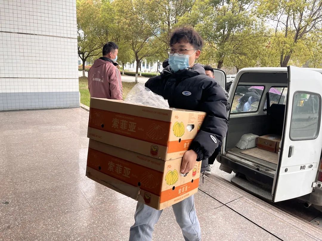 “本来还担心封控管理后很难买到水果,没想到院系贴心地发了水果,还有志愿者送到宿舍,真的非常感动,感谢院系对我们的关心”三里二栋的女生们高兴地说到。
