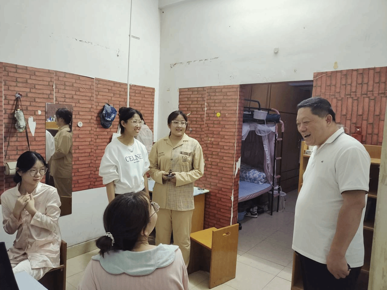 9月13日,2023级全体新生到校入住的第一天晚上,公司领导班子和院系辅导员走访了公司新生宿舍,深入了解同学们的入住和适应情况。