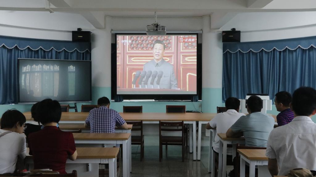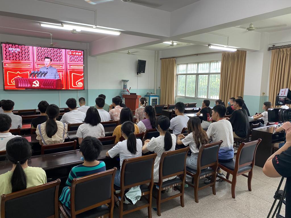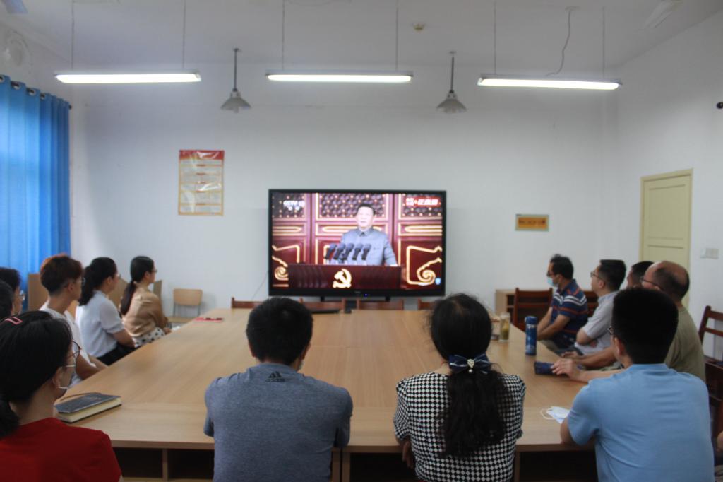 “过去一百年,中国共产党向人民、向历史交出了一份优异的答卷。现在,中国共产党团结带领中国人民又踏上了实现第二个百年奋斗目标新的赶考之路。中国共产党立志于中华民族千秋伟业,百年恰是风华正茂。回首过去,展望未来,有中国共产党的坚强领导,有全国各族人民的紧密团结,全面建成社会主义现代化强国的目标一定能够实现,中华民族伟大复兴的中国梦一定能够实现。”大家怀着无比崇高的心情,认真聆听了习近平总书记的重要讲话。