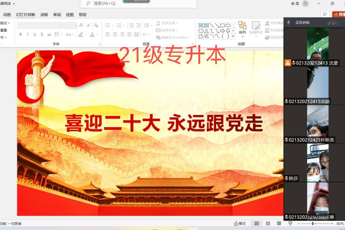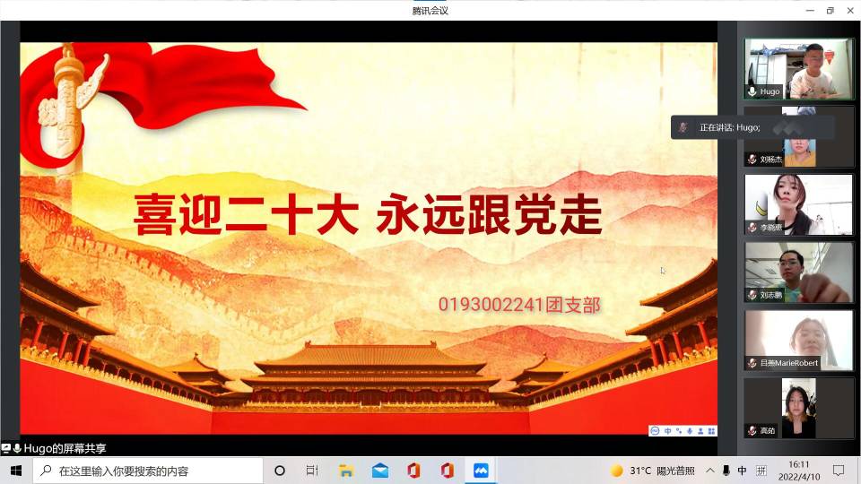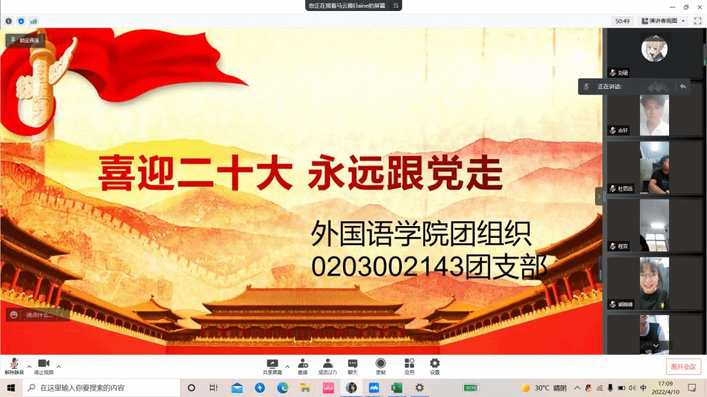 4月10日公司线上开展“喜迎二十大 永远跟党走”主题团日活动,本次活动由各班团支书主持,全体同学积极参加。